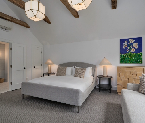 The Farm House is our take on a modern farmhouse with wrap-around porches and giant hydrangeas. It has 3 bedrooms with 3 ensuite baths. Your stay includes exclusive use of the guest house with 1 bedroom and 1 bathroom, you may reserve additional bedrooms for additional guests by contacting us.  All bedrooms are on the second floor and have their own heat and AC control, Frette linens, down pillows and comforters, with non-down bedding available upon request.