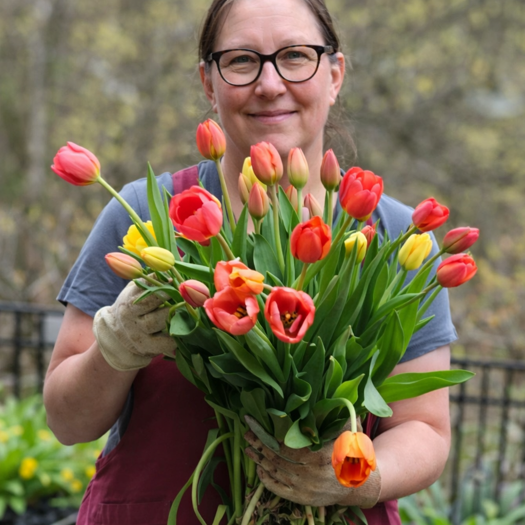 Create an arrangement using locally grown tulips complemented by seasonal woody stems. Maura will share her knowledge of planting and harvesting techniques and the rich symbolism tulips have across cultures.